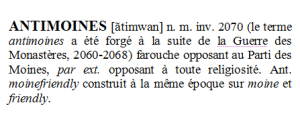 - dans le second article, deux définitions radicalement distinguées (même si elles peuvent être reliées par une métonymie) et numérotées