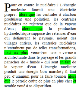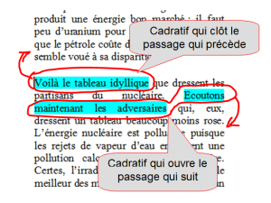 Les textes argumentatifs ont aussi conduit à s'interroger sur les « connecteurs » et sur les « cadratifs ».