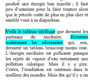 Il oppose deux positions. Dans certains textes argumentatifs, l'une de ces positions est dominante, l'autre secondaire. Ici, elles apparaissent mises sur le même plan. Il y a, en effet, deux types d'argumentations, celles qui proposent une position déterminée et celles qui offrent un panorama à partir duquel le lecteur ou l'auditeur pourra se forger une position propre.
