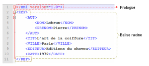 Mais pour avoir un fichier XML, il faut impérativement avoir une balise ouvrante en début de fichier et la balise fermante correspondante en fin de fichier. Ces deux balises contenant tout le document constituent la balise racine du document XML.