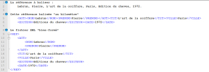 Reprenons le balisage d'une donnée bibliographique en balisant aussi l'ensemble de la référence bibliographique (avec « REF ») afin d'obtenir un fichier XML :