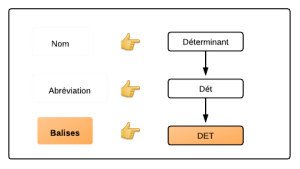 Nous allons utiliser une balise. Cette balise se divisera en balise ouvrante et balise fermante : <DET>le</DET>.