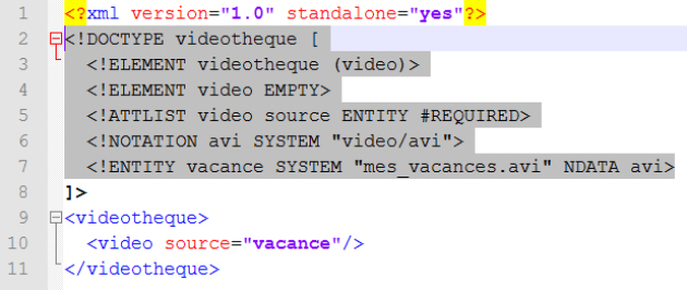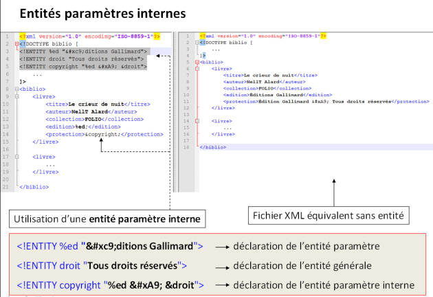 - dans la DTD et utilisée dans la DTD elle-même (entités paramètres)