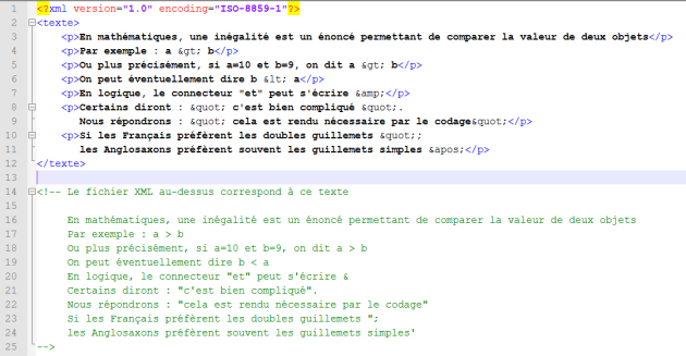 Exemple : L'utilisation de ces entités dans un fichier XML