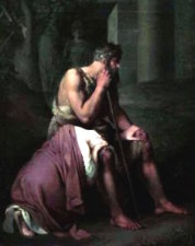 "Tu es bien celle que j'ai vue dans le rêve où Sélénos m'annonçait ta venue et celle de ton père. Qui est celui qui t'accompagne ?" Clios s'avance : "Je suis Clios qu'on appelait le bandit. J'ai eu de grands torts envers Antigone et son père. Ils les ont oubliés et je m'efforce depuis de les défendre. Accorde à Œdipe et à moi le droit de bâtir une hutte près du bois d'oliviers. Donne-nous un peu de nourriture et je travaillerai pendant que nous serons là. – Au nom de mon fils Narsès, dit Diotime, et de notre allié Sélénos, vous êtes les bienvenus. Vous aurez ce que vous demandez."